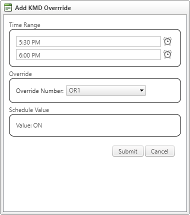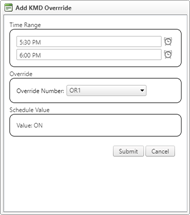 3 | Right-click on the selected block of time and choose Add KMD Override from the shortcut menu. The Add KMD Override dialog opens. |