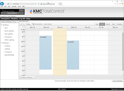- The time and date that the change takes place is controlled by the time and date of the computer running TotalControl, not the computer running the browser.